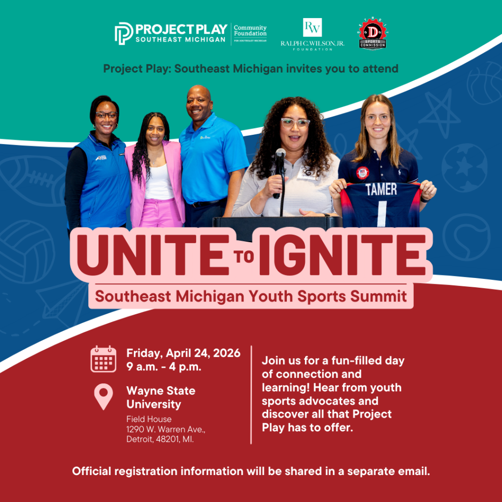 Join us for Unite to Ignite: Southeast Michigan Youth Sports Summit, a dynamic gathering designed to inspire, connect and empower the Project Play Southeast Michigan community. This special event brings together youth sports coaches, advocates, volunteers and leaders for a day of collaboration, learning and celebration.